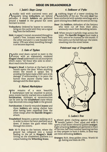 Jeanne of Jadot launched a crusade against Oliver the Orotund under pretense of halting his use of black magic. In truth, she seeks possession over the Bastille Dragon, famed for the shedding of its jewel encrusted skin. After several years of siege she was able to break into the castle town. A fierce battle ensued, and fearing that his army would lose, Oliver set the Bastille Dragon loose upon the castle town. The battle was scattered across the town as both factions of soldiers fled the beast. Oliver’s attempts to recall the beast have all failed, and now it roams free wreaking havoc.